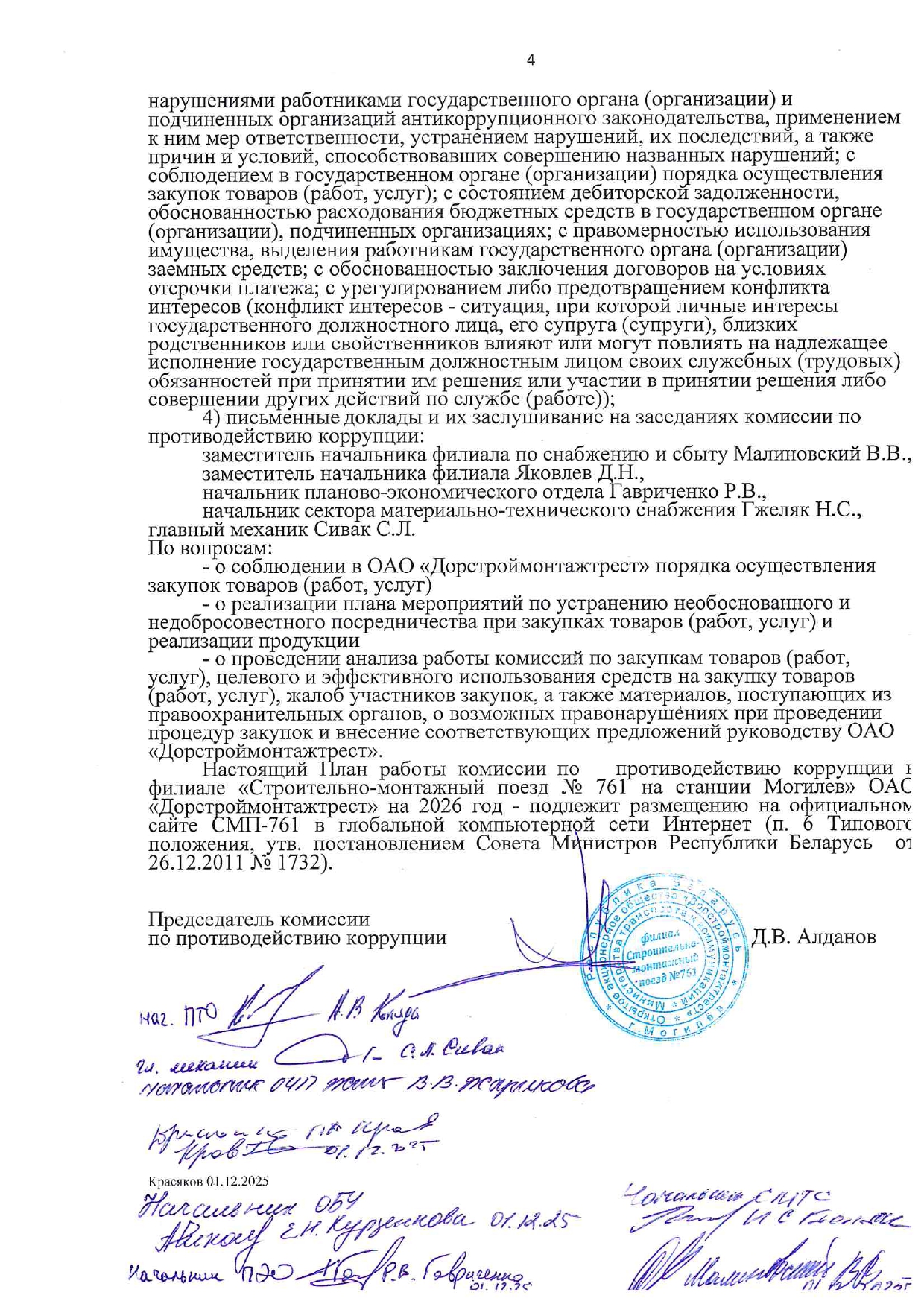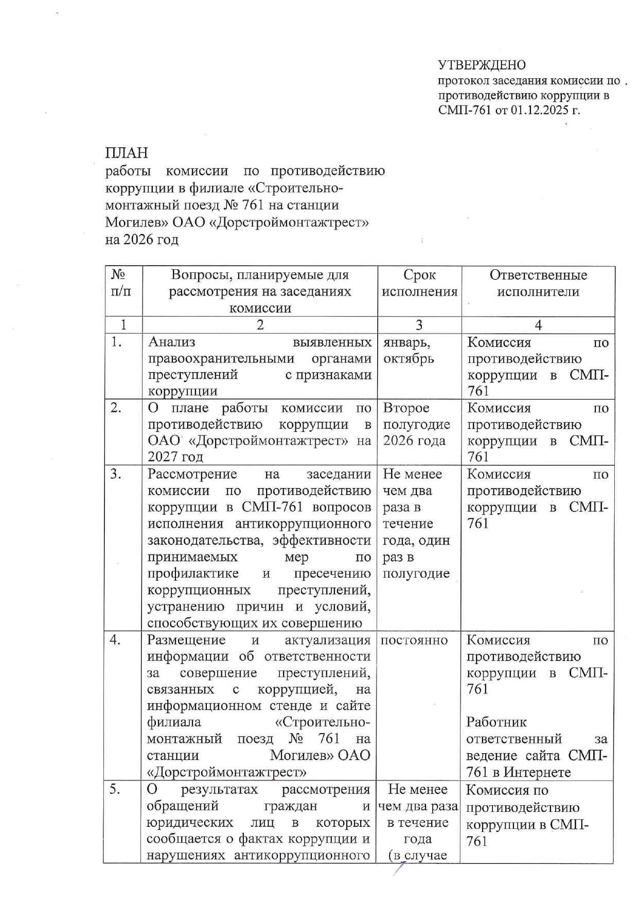 План работы комиссии по противодействию корупции на 2026 год