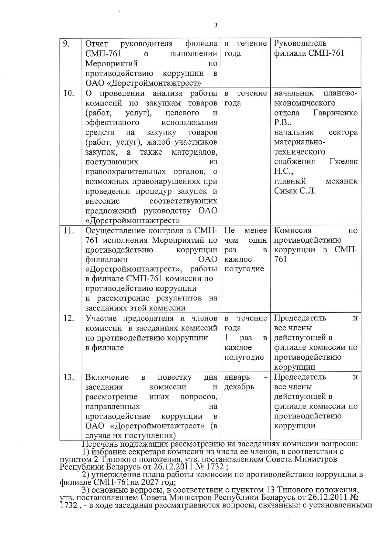 Повестка дня заседания комиссии по противодействию коррупции в филиале СМП-761